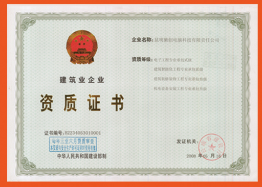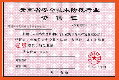 •  云南省安全技術(shù)防范行業(yè)資信證壹級證書(shū)