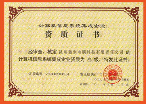•  計算機信息系統集成企業(yè)叁級資質(zhì)證書(shū)