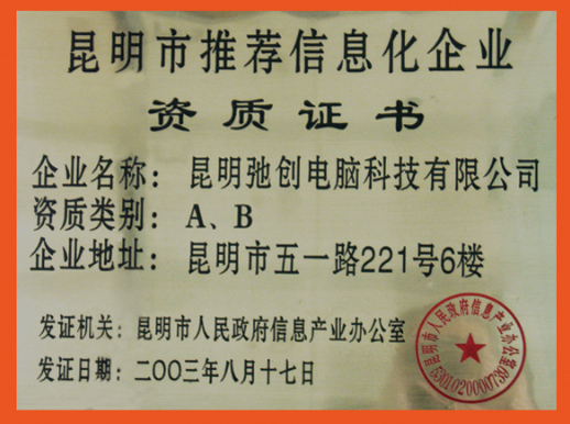 •  昆明市推薦信息化企業(yè)資質(zhì)證書(shū)